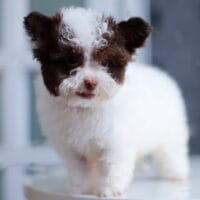 🍫 Aabaa là viên “truffle” sống động, kết hợp hoàn hảo giữa màu trắng kem & nâu socola, cùng phần lông trán lượn sóng như vẽ tay 🎨