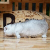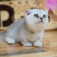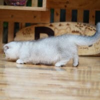 🐱 Aabner – bé Munchkin Fold chân ngắn với bộ lông bạc tinh khôi lấp lánh ✨ và đôi tai cụp siêu đáng yêu 🐾. Bé chính là “ngôi sao băng” mang vẻ đẹp tinh tế, quý phái, sẵn sàng bừng sáng mọi không gian! 🌠