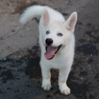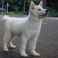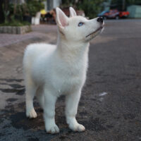 ❄️ Aaelus là một bé Husky hiếm có – sở hữu bộ lông trắng tinh khôi, đều màu từ đầu tới đuôi, kết hợp đôi mắt xanh lam băng giá, vừa nhìn đã thấy… cảm lạnh vì đẹp trai.