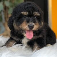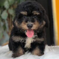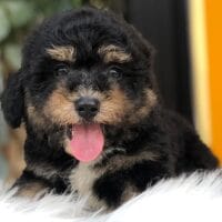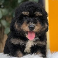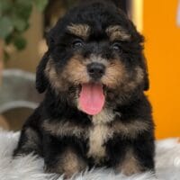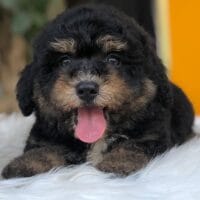 🐾 Với bộ lông phối màu đen – nâu vàng tự nhiên, bé trông như đang khoác một chiếc áo khoác “chất lừ” không đụng hàng.
