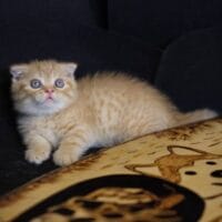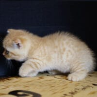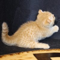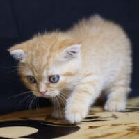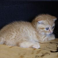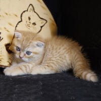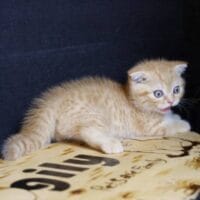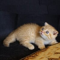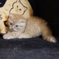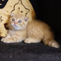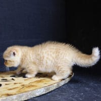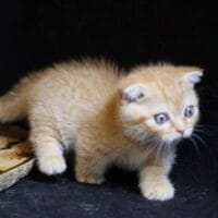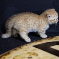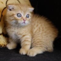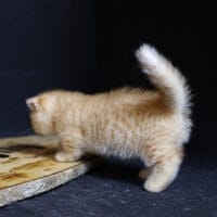 🐱 Aayden – chàng Munchkin Fold chân ngắn với bộ lông Red Tabby vàng rực rỡ, đôi tai cụp đáng yêu và thần thái tinh nghịch 🐾. Bé như một “viên kẹo bơ cứng” mang theo niềm vui & sự ấm áp cho cả gia đình 🏡💖.