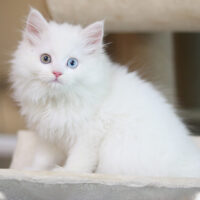 ❄️ Aayla – nàng mèo Anh lông dài trắng muốt như bông tuyết, sở hữu đôi mắt 2 màu độc đáo: một bên xanh biếc, một bên hổ phách ấm áp, khiến ai nhìn cũng phải trầm trồ. 💖 Bộ lông dài, dày và mềm mịn như mây, ôm trọn vóc dáng nhỏ nhắn xinh xắn.