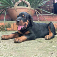 🐾 Adler là một bé Rottweiler đực đen vàng cổ điển, mới 2 tháng tuổi nhưng đã có dáng dấp của một “chiến binh canh cổng tương lai” 💪