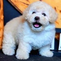 🍦 Vẻ ngoài ngọt ngào: bộ lông kem sáng, mềm mại, xoăn bồng bềnh như mây; gương mặt xinh xắn với đôi mắt đen láy ngây thơ.