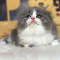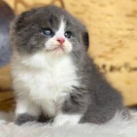 🌼 Alasdair – mèo tai cụp bicolor xám trắng, mắt tròn sâu lắng, tính cách điềm tĩnh và ấm áp, sẵn sàng “bảo vệ” trái tim bạn bằng tình yêu thương! 🩶💙🐾