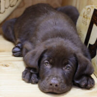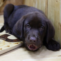 🍫 Albie là bé Labrador đực 2 tháng tuổi – sở hữu bộ lông nâu socola mịn mượt như chocolate nguyên chất, ánh mắt lúc nào cũng long lanh như đang chờ được vuốt ve 🐾🛋️