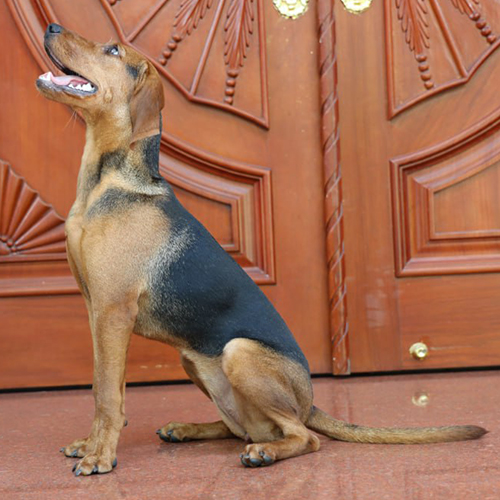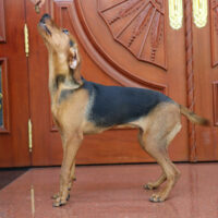 Bé thường ngẩng đầu đón nắng – thói quen đặc trưng của giống săn rừng, và cực kỳ ăn ảnh trong mọi khung hình 📸🌿.
