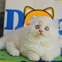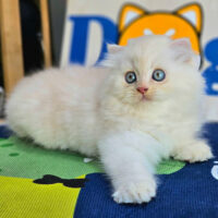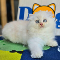 🐱 Alwyn – chàng Scottish Fold tai cụp lông dài với bộ lông trắng kem bồng bềnh, điểm xuyết sắc hồng phấn nhạt, tựa viên ngọc trai lấp lánh sang trọng 💎✨.