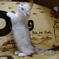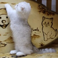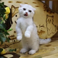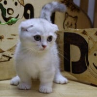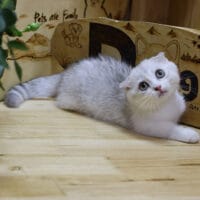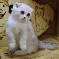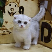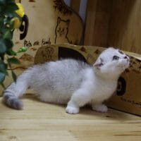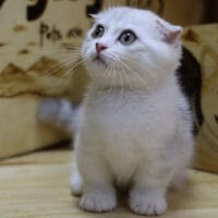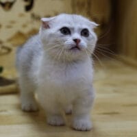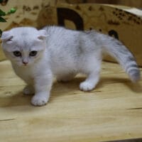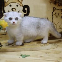 🐾 Angel – chàng mèo Munchkin Fold chân ngắn với bộ lông bạc tinh khôi lấp lánh và đôi tai cụp siêu đáng yêu, bé chính là một thiên thần nhỏ mang vẻ đẹp thanh lịch và thuần khiết, sẵn sàng làm tan chảy mọi trái tim! 🤍✨