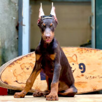 🐾 Anselm gây ấn tượng mạnh với bộ lông nâu socola quý hiếm kết hợp mảng vàng đồng ấm áp – tông màu hiếm hơn so với Doberman đen truyền thống, mang đến vẻ đẹp sang trọng và cuốn hút 🟤✨.