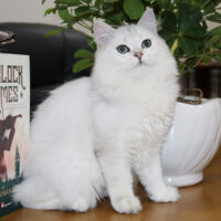 🌟 Bộ lông trắng bạc mềm mịn như mây, được phủ lớp ánh silver nhẹ nhàng, tạo cảm giác sang trọng và quý phái.
