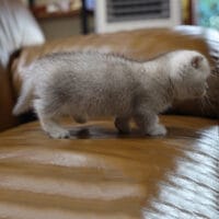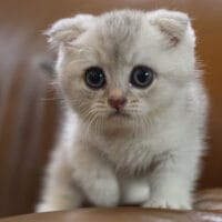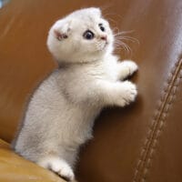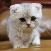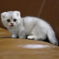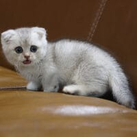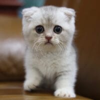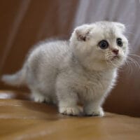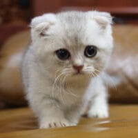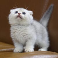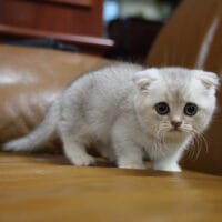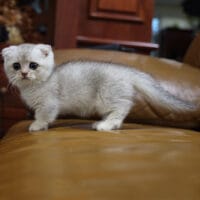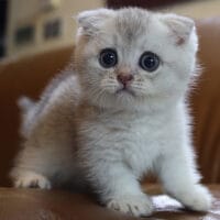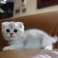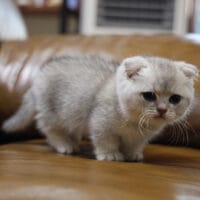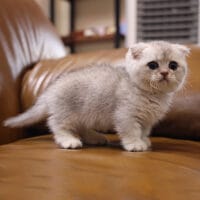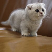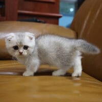 Mèo Munchkin Fold Silver chân ngắn tai cụp siêu phẩm, bộ lông bạc lấp lánh, mắt xanh biếc/vàng óng, tính cách dịu dàng! 🤍 Nàng Arya quý phái sẵn sàng về nhà mới! ✨