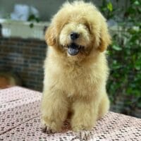 - Mái lông màu vàng mơ óng ánh, xoăn tít và bồng bềnh, tạo nên vẻ đẹp sang trọng và ấm áp.