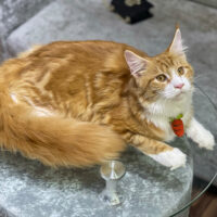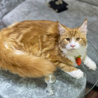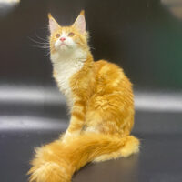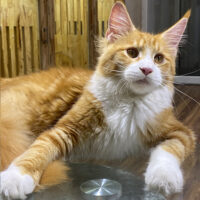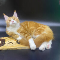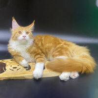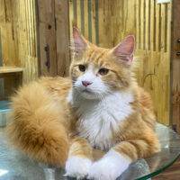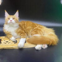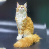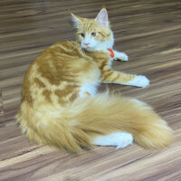 Aurelion 🦁☀️ – chàng Maine Coon 4 tháng tuổi với bộ lông vàng óng sang trọng 🌟, ngực trắng tinh 🤍, đuôi siêu bồng bềnh 🪶 và ánh mắt vàng hổ phách đầy cuốn hút ✨.