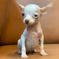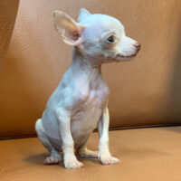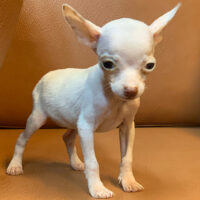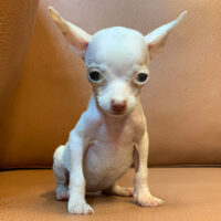 🐾 Auri là một bé Phốc Hươu (Miniature Pinscher) size siêu nhỏ, màu trắng hiếm, thuần chủng, dáng gọn gàng chỉ như một “bé bỏng bỏ vừa lòng bàn tay” 🍼🤏. Làn da trắng hồng, đôi mắt tròn long lanh và đôi tai dựng đáng yêu khiến bé giống như một nhân vật bước ra từ truyện cổ tích.