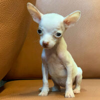 🐾 Auri là một bé Phốc Hươu (Miniature Pinscher) size siêu nhỏ, màu trắng hiếm, thuần chủng, dáng gọn gàng chỉ như một “bé bỏng bỏ vừa lòng bàn tay” 🍼🤏. Làn da trắng hồng, đôi mắt tròn long lanh và đôi tai dựng đáng yêu khiến bé giống như một nhân vật bước ra từ truyện cổ tích.