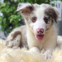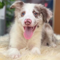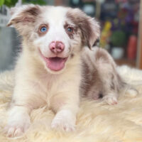 🐶 Avenlor là bé Border Collie đực 2 tháng tuổi, mang bộ lông Lilac Merle loang quý hiếm – phối loang hoàn hảo giữa kem bạc, nâu sữa và tro tím 🖌️💠