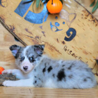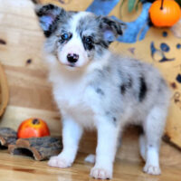 (Đặt theo tên thiên sứ trong văn học Do Thái – “Azriel” mang ý nghĩa “người được Chúa giúp đỡ” 💫. Cái tên này vừa huyền bí vừa quý phái, gợi lên vẻ đẹp thanh thoát, đôi chút siêu thực – rất hợp với màu lông Blue Merle tuyệt sắc và đôi mắt biếc sâu thẳm của bé Border Collie này 👁️❄️)