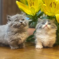 💞 Cả hai bé đều có dáng đi thấp bé dễ thương, thân hình ú nu, tai cụp nhẹ và bộ lông dày mịn như lụa.