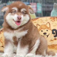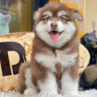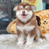 ✨ Ngắm ngay bé Alaska Malamute Banoo ❄️🐻 – “cậu gấu đào” ngọt ngào với thân hình tròn trịa, má bánh bao, lông nâu đỏ phối trắng cực dày 🍫 và đôi mắt xanh hổ phách long lanh 🌟. Mỗi nụ cười tươi rói đều đủ khiến trái tim tan chảy! 🎥