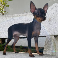 🐾 Bastian là một bé Phốc Hươu (Miniature Pinscher) đực 2 tháng tuổi, thuần chủng, dáng gọn cân đối với bộ lông đen tuyền bóng mượt và những mảng vàng óng nổi bật ở ngực, chân và gương mặt. Thần thái lanh lợi, dáng đứng vững vàng cho thấy tố chất của một “chiến binh mini” tràn đầy năng lượng.