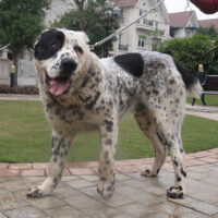 🖤 Với bộ lông đốm đen trắng loang quý hiếm, Batyr nổi bật giữa thế giới Alabai 🌪️. Các mảng đốm lan từ đầu đến chân như một bức họa sống động, càng tôn lên thân hình cơ bắp – ngực nở – chân thẳng – cổ to chắc khỏe 💪🎨