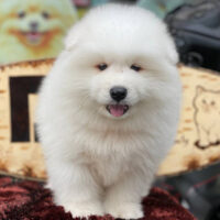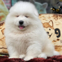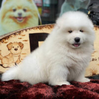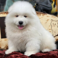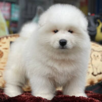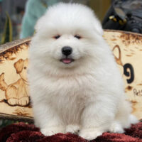 🐾 Bogdan là một bé Samoyed đực 2 tháng tuổi – nổi bật với gương mặt tròn mũm, lông trắng muốt – thân hình cân đối – tai cụp nhẹ – mõm ngắn và nụ cười Samoyed huyền thoại, như một “cục tuyết sống có trái tim biết cười” ❄️😄