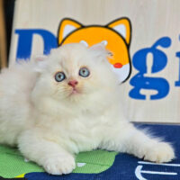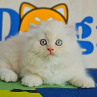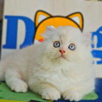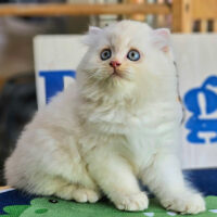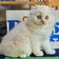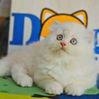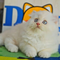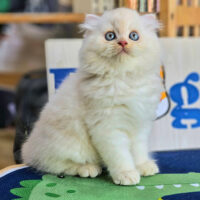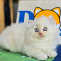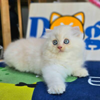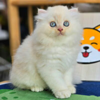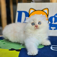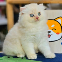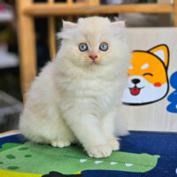 Brienne – mèo Anh lông dài hồng phấn 🌸, mắt xanh 💙, 2 tháng tuổi 🍼. Ngoan hiền, tình cảm, đã tiêm ngừa & tẩy giun đầy đủ ❤️.