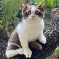 Brollo – bé mèo bicolor chocolate cực phẩm với bộ lông như sữa và socola tan chảy 🍫. Gương mặt vừa nghiêm túc vừa lém lỉnh, ánh mắt vàng sáng cuốn hút vô cùng!