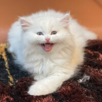 ✨ Brontë – mèo Anh lông dài trắng muốt 2 tháng tuổi 🍼, tinh khôi như tuyết đầu mùa ❄️.