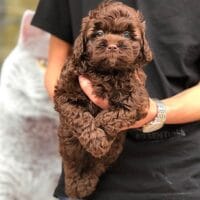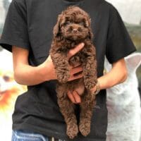 - 🍫 Màu lông nâu socola “nguyên chất”: Caramelia khoác lên mình bộ lông xoăn tít, bồng bềnh và mềm mại như tơ lụa, với sắc nâu socola đồng đều, đậm đà và óng ánh, gợi liên tưởng đến những viên kẹo caramel hấp dẫn. Màu sắc này không chỉ dễ thương mà còn mang lại cảm giác ấm áp, sang trọng, thu hút mọi ánh nhìn.