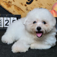 💗 Chérie là một bé Bichon Frise cái 2 tháng tuổi, nổi bật với ngoại hình trắng kem mịn màng, má và mõm pha chút vàng nhạt như đánh má hồng, đôi mắt đen long lanh như hạt cườm – nhìn một lần là nhớ mãi 🎀✨