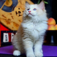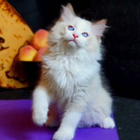 🐾 Bộ lông dài mượt màu cream – trắng tinh khôi 🤍, điểm nhấn café sữa ở tai và đuôi ☕, tạo nên thần thái vừa thanh lịch vừa ấm áp 💫.