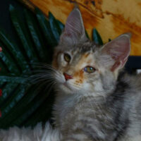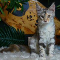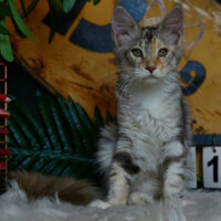 ✨ Cleo – nàng Maine Coon tam thể siêu xinh 4 tháng tuổi 🍼, dù còn nhỏ nhưng đã toát lên thần thái chuẩn “nữ hoàng”.