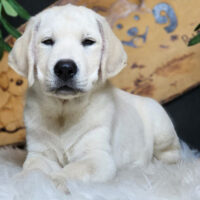 🤍 Corwin là bé Labrador đực 2 tháng tuổi – lông trắng kem dày mịn, ánh mắt toát lên vẻ dịu dàng, thân hình tròn trịa, chuẩn dáng quý cậu nhà Retriever 🐾🛋️