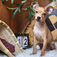 🐾 Cyril là một bé Phốc Hươu (Miniature Pinscher) đực, 2 tháng tuổi, màu vàng óng nổi bật. Bé có dáng người thon gọn, cơ bắp săn chắc và bộ lông mượt mà như lớp mật ong óng ánh dưới nắng.