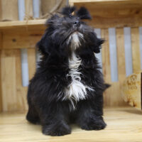 ✨ Dạ Minh – bé Shih Tzu đực 2 tháng tuổi, mang bộ lông đen tuyền huyền bí cực hiếm 🖤. Lông dài, mượt, dày, ôm sát cơ thể như một tấm áo choàng đêm sang trọng. Đôi mắt đen tròn long lanh, ẩn sau lớp lông mềm mịn, toát lên vẻ quý tộc, bí ẩn.