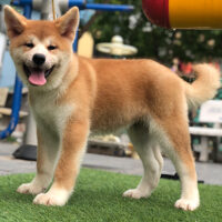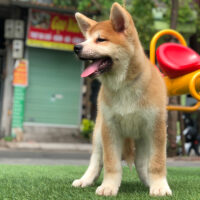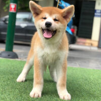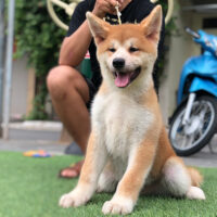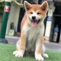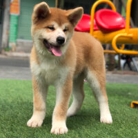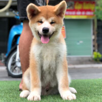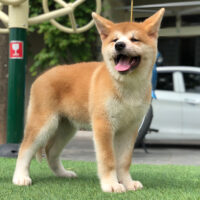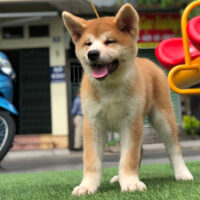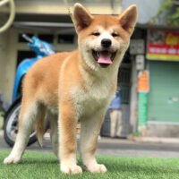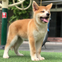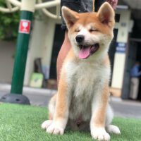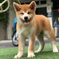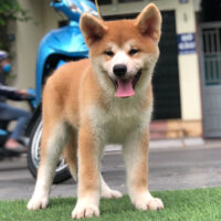 🧡 Akita Inu đực – lông vàng sậm pha trắng – dáng vuông – đuôi cuộn cao