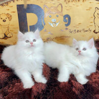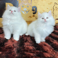 🐱 Delwyn & Drae – Đôi mèo ALD trắng tinh mắt vàng 💛, lông bồng bềnh như mây ☁️, hiền lành – quấn chủ, 2 tháng tuổi 🍼, sức khỏe tốt 💉, đã xổ giun ✅.