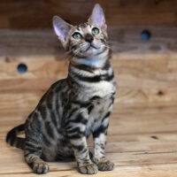 🐾 Dionysius là một bé mèo Bengal đực 3 tháng tuổi mang bộ vằn rosettes lớn nổi bật, sắc nét như tác phẩm điêu khắc trên thân hình cơ bắp 💪. Bộ lông của bé kết hợp giữa nền nâu trầm ấm và các mảng đốm đen rực rỡ – tạo nên tổng thể như một chú báo nhỏ hoang dã giữa rừng nhiệt đới 🌳🌪️