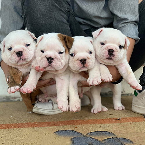 Dover Family là bộ tứ hoàng gia Bulldog Anh 2 tháng tuổi, mang đậm chất quý tộc đến từ xứ sở sương mù. Với sự kết hợp giữa màu lông bò sữa nâu – trắng siêu hiếm và thần thái cực “cool”, các bé có form đầu – mặt – chân vô cùng chuẩn chỉnh.