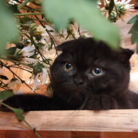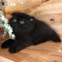 🌼 Duncan – mèo đen tai cụp, lông đen tuyền óng ả, mắt hổ phách/xanh biếc quyến rũ, tính cách điềm tĩnh và tình cảm, sẵn sàng sưởi ấm trái tim bạn! 🖤🧡🐾