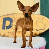 Elvar – bé Phốc Hươu thuần chủng vàng bò 🧡, dáng thanh mảnh chuẩn Minpin 💪, tai dựng 🐰, nhanh nhẹn và bám chủ 💖.