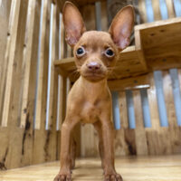🐾 Eryx là một bé Phốc Hươu (Miniature Pinscher) thuần chủng màu vàng bò óng ả 🧡, mới tròn 2 tháng tuổi nhưng đã sở hữu đôi tai dựng thẳng 🐰 và đôi mắt to tròn long lanh ✨.