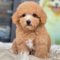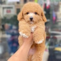 Chào bạn, mình xin giới thiệu bé Fabien 🐶 – chú chó Poodle mini/toy màu vàng mơ với điểm nhấn đặc biệt là chiếc yếm trắng xinh xắn, cùng bộ lông bồng bềnh và đôi mắt tinh anh, chắc chắn sẽ mang đến niềm vui và sự ấm áp cho gia đình bạn! Tên Fabien là một cái tên cổ điển và thanh lịch của Pháp, rất phù hợp với vẻ ngoài độc đáo của bé.