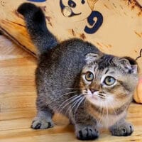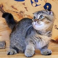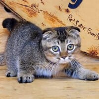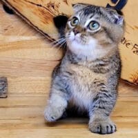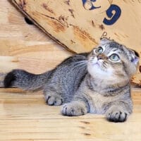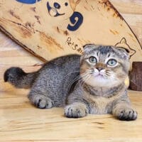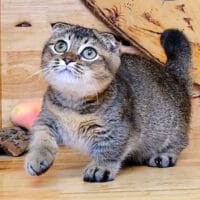 Mèo Munchkin Golden chân ngắn tai cụp siêu đáng yêu, bộ lông vằn hổ phách, mắt tròn xoe, tính cách thân thiện! 🐅🧡 Chàng “hổ con” Finley sẵn sàng chinh phục trái tim bạn! ✨