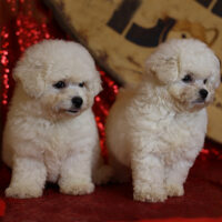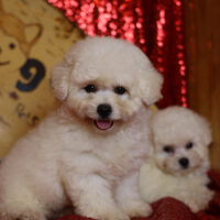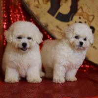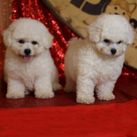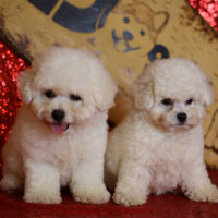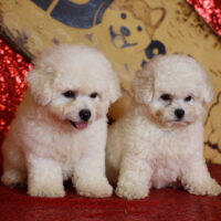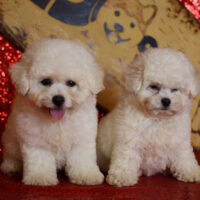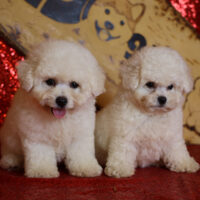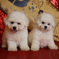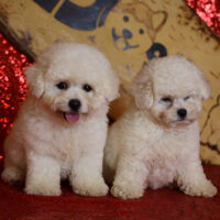 🐾 Flocon & Bisou là một cặp đôi Bichon Frisé 2 tháng tuổi, sở hữu bộ lông trắng muốt bồng bềnh như mây, cùng vóc dáng nhỏ xinh và khuôn mặt bầu bĩnh vô cùng đáng yêu. Flocon có vẻ ngoài tinh tế, lém lỉnh, trong khi Bisou lại hiền lành, tình cảm hơn, tạo nên một sự cân bằng hoàn hảo.