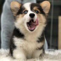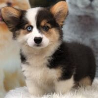 🌈 Hachi là một bé Corgi Tricolor với đôi mắt hai màu độc lạ – một xanh dương trong vắt, một nâu trầm ấm, nhìn một lần là mê liền!