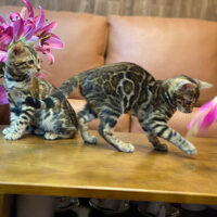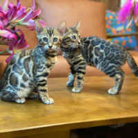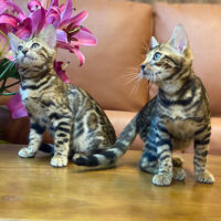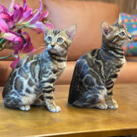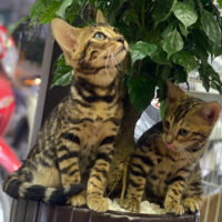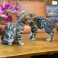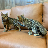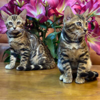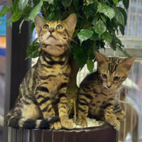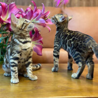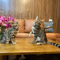 Hana và Heloise là hai bé mèo Bengal cái 2 tháng tuổi mang vẻ đẹp nổi bật như hai đóa hoa rực rỡ 🌸🌼.