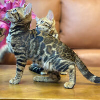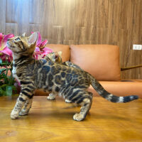 💎 Cả hai bé đều sở hữu bộ lông nâu đậm với các hoa văn rosetted cực sắc nét – đúng chuẩn Bengal show-quality. Đặc biệt, vùng ngực và bụng lông trắng tinh, bàn chân to và chắc khoẻ – dấu hiệu di truyền tốt từ dòng bố mẹ.